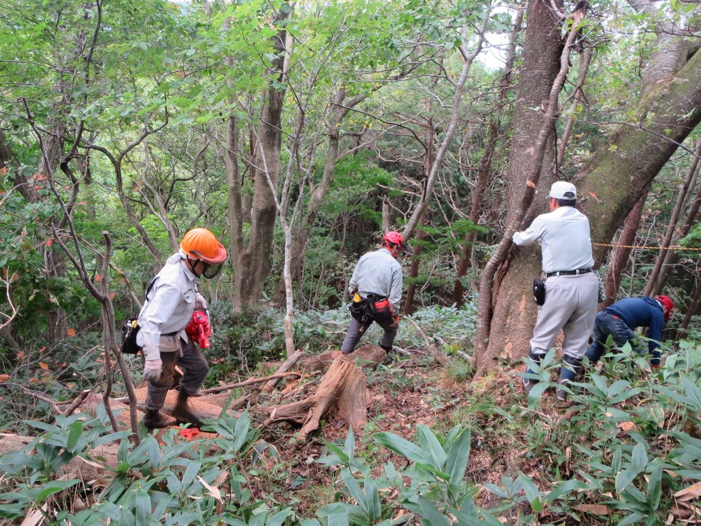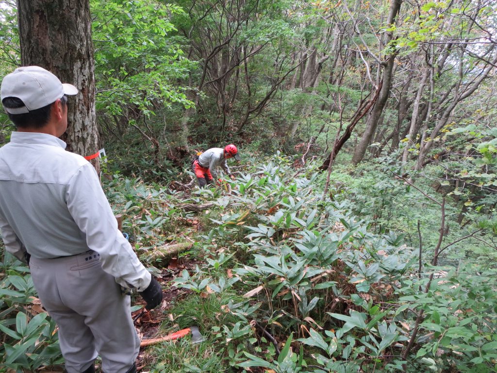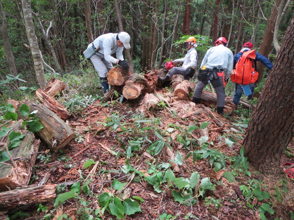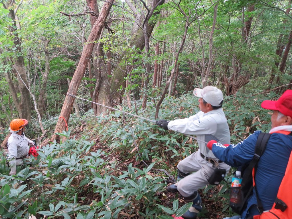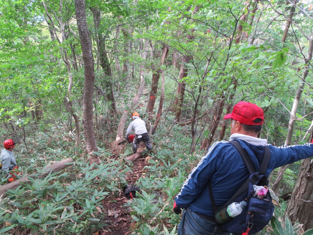 10月19日(日)、秋や今後の学習会などに向けて、危険木の伐採チームが二口ルートに入りました。4月に現地の事前調査を行い目印を付けた危険木の伐採にかかりました。作業前には熊対策として花火を打ち上げました。作業にはプロフェッショナルの出羽庄内森林組合の組合員のご協力を頂きました。いつもご協力頂き感謝感謝です。この作業は「やまがた緑環境税」活用して行いました。「やまがた緑環境税」を納めて頂いている県民の皆様にも感謝申し上げます。松枯れなどによる枯れ木は我々が行う学習会の参加者の安全を確保する為にも以前からの課題でした。この度の伐採で少しは解決できたかなと思います。ただ、伐採作業より松枯れなどによる危険木が進んでいるのが現状です。我々はこれからも学習会に参加して下さる方や、藤倉山に来て下さる方の安全を確保する為に頑張って行きます。そして、地域に恵みをもたらす藤倉山の環境を次世代に引き継ぐためにも頑張って行きます。