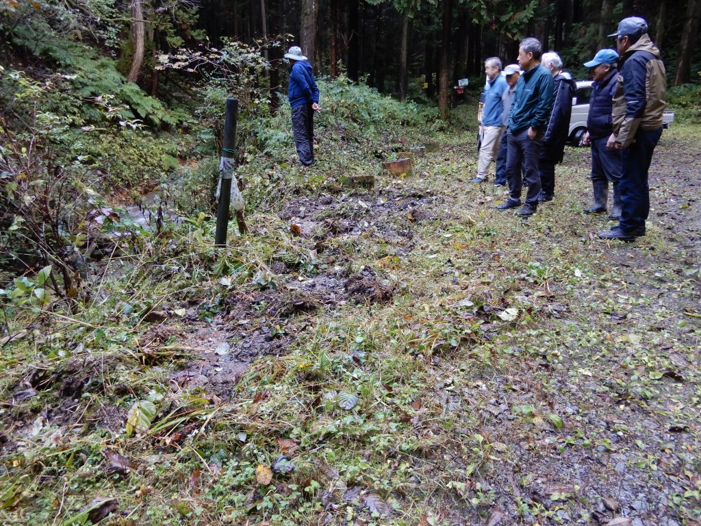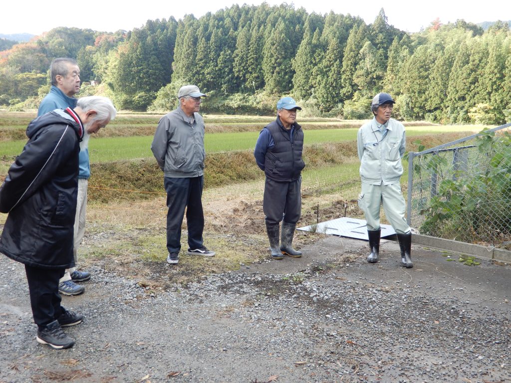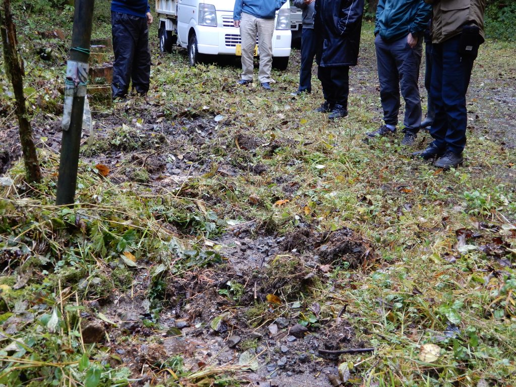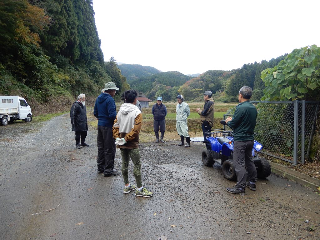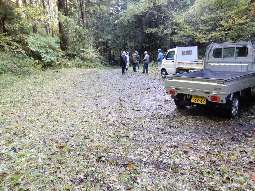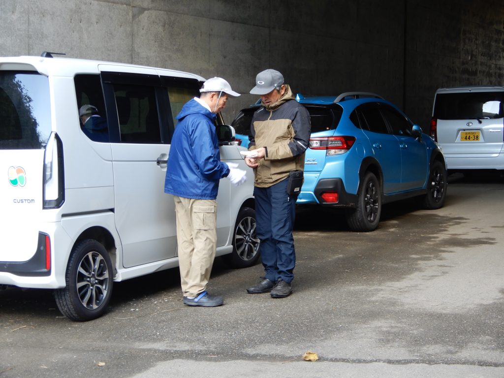 11月2日(日)に予定していた閉山祭は熊の出没ために中止になりましたが、会員は予定通り集合して中止を知らずに来られた方への対応を行いました。来られた方には事情を説明し、三瀬産で三瀬の氣比神社で祈祷して頂いた新米をプレゼントさせて頂きました。その後、会員は獅子畑登山口駐車場に移動し、林道や駐車場の状況を確認しました。駐車場はイノシシによって掘られた状況を確認出来ました。閉山祭などに備えて、林道は林道入口から駐車場まで砂利を敷きました。